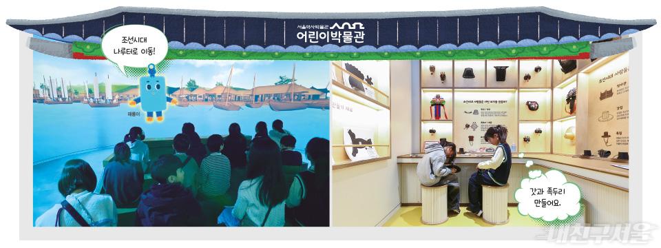 조선시대 주요 운송수단인 황포돛배에 올라타 한강 풍경이 현재에서 과거로 바뀌는 실감 나는 영상을 감상했다. 이렇게 조선시대로 이동한 어린이기자들은 과학, 교육, 직업 중 한 가지 주제를 선택한 후, 패롱이에 상평통보* 열 냥을 충전했다. 그러자 도성의 통행금지 해제를 알리는 종이 울려퍼지면서 숭례문이 열리고 본격적인 한양 탐험이 시작됐다.