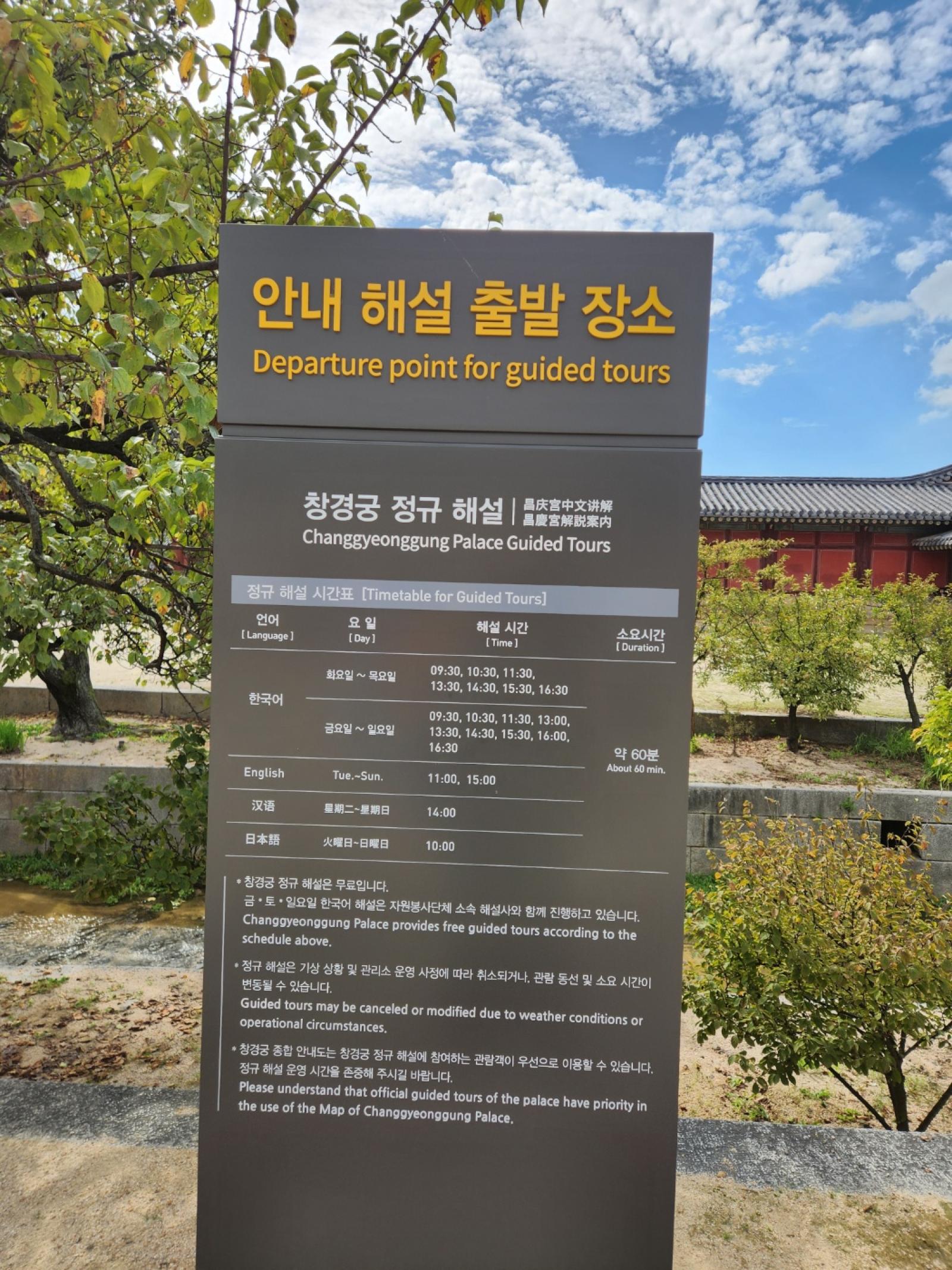 창경궁에서는 투어를 신청해서 무료해설(약60분 소요)도 들으실 수 있으니,