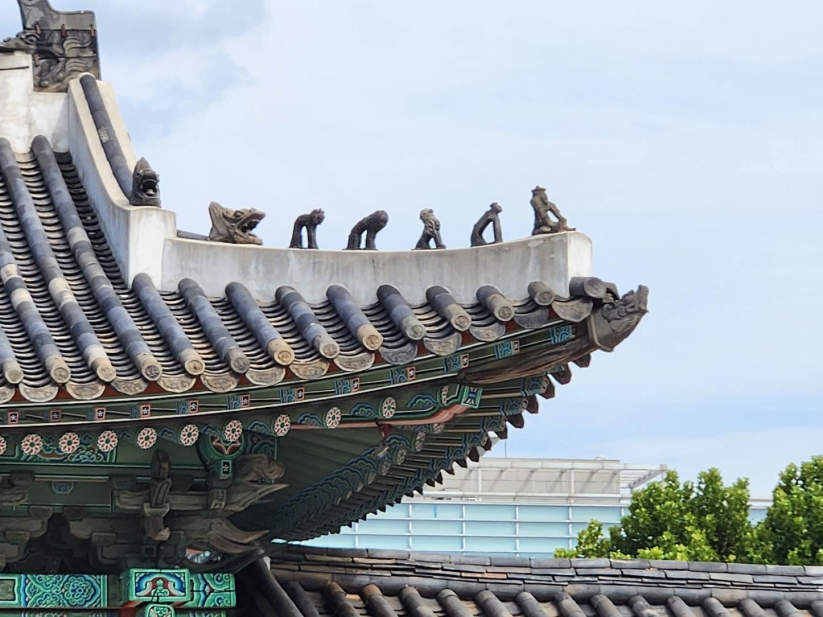 궁궐 처마위에는 잡귀를 내쫓는 '잡상(여러 동물 사람 등 모양 형상)'이 있어요(창경궁의 정문 '홍화문' 위 전경)