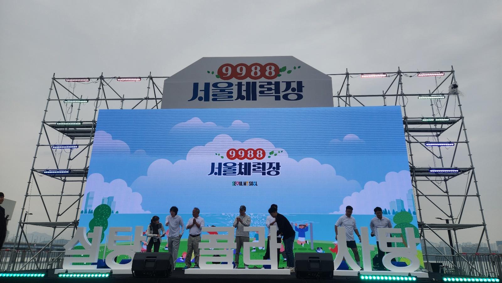 지난 10월 26일 여의도 한강공원에서 ‘9988 서울체력장’이 열려져 체력을 측정하고 다양한 서울시 건강과 식생활 정보를 접해볼 수 있었습니다. 10시부터 시작해서 이벤트 광장에서 팔 굽혀펴기와 훌라후프 돌리기로 미션에서 살아남은 사람들에게 선물을 주었습니다.