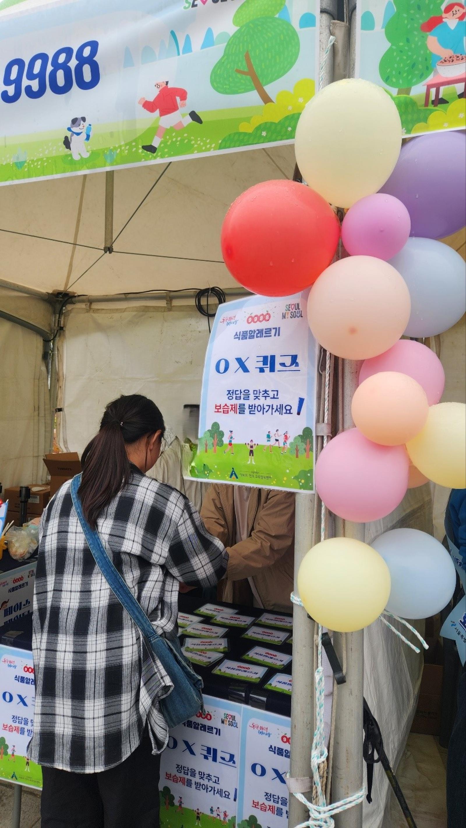 오전에 비가 흩뿌려지는 가운데 체력존, 식품존, 건강존 등 다양한 테마 부스에 참여를 할 수 있었습니다. 체력존에서 근력, 근지구력, 심폐지구력, 유연성, 민첩성, 순발력 6개 분야를 측정하여 체력 등급 통지표를 받을 수 있었습니다. 식품존에서 잡곡밥 시식과 간식 속 당 함량을 눈으로 확인해보는 경험을 할 수 있었고 건강존에서는 식품 알레르기 퀴즈, 올바른 손 씻는 방법, 칫솔질 체험 등 시민 및 어린이들이 직접 참여하며 건강 정보를 알 수 있었습니다.