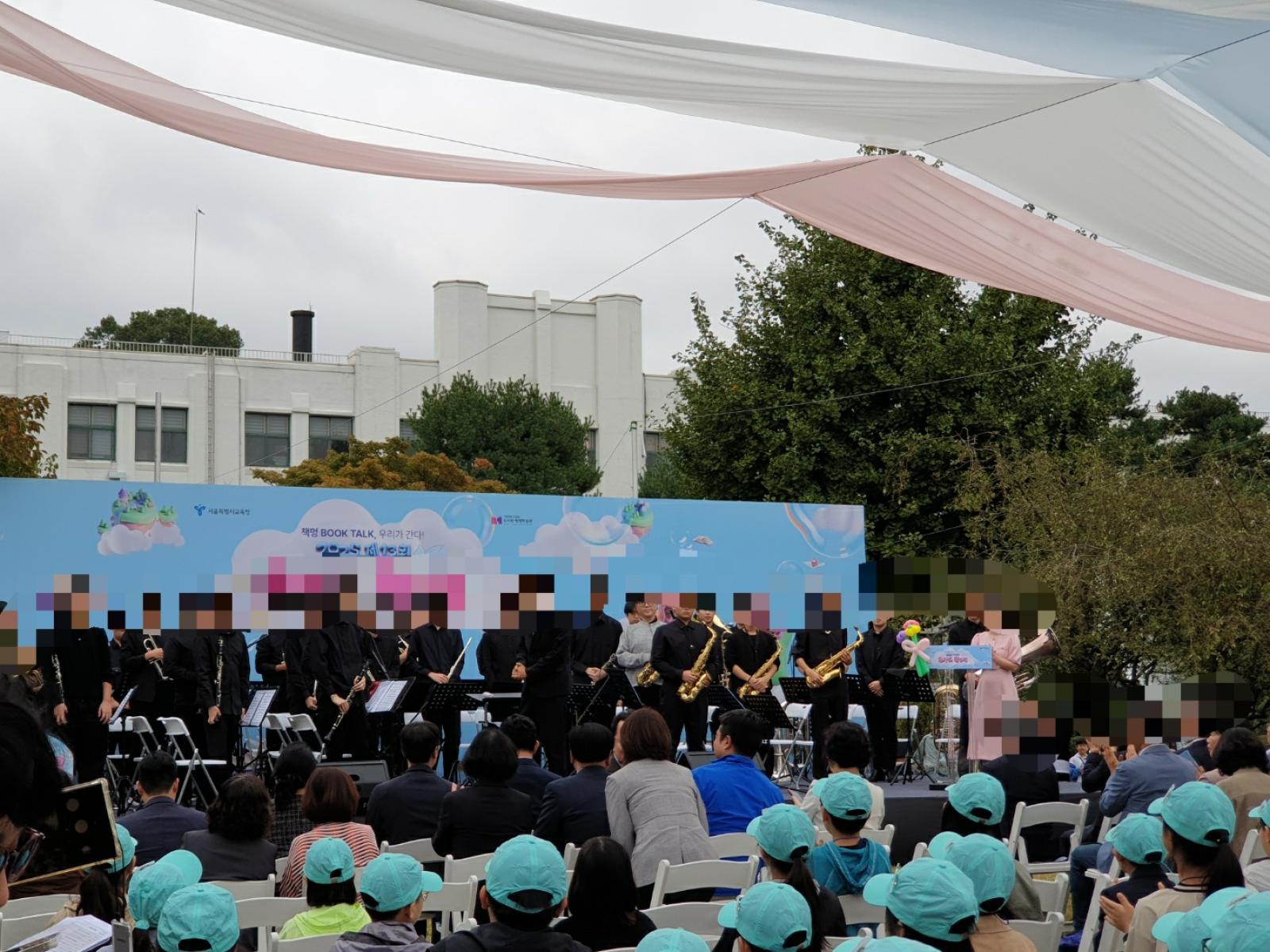 축제의 중심이었던 '북스타 스테이지'에서는 다양한 행사가 열렸습니다. 가장 먼저 ‘성남고등학교 윈드오케스트라'의 도서관 음악회 연주가 펼쳐졌습니다. 제가 정말 재미있게 봤던 영화 '해리포터'의 주제곡과 '케이팝데몬헌터스'의 '골든'을 오케스트라 연주로 들으니 정말 새롭고 웅장해서 인상 깊었습니다