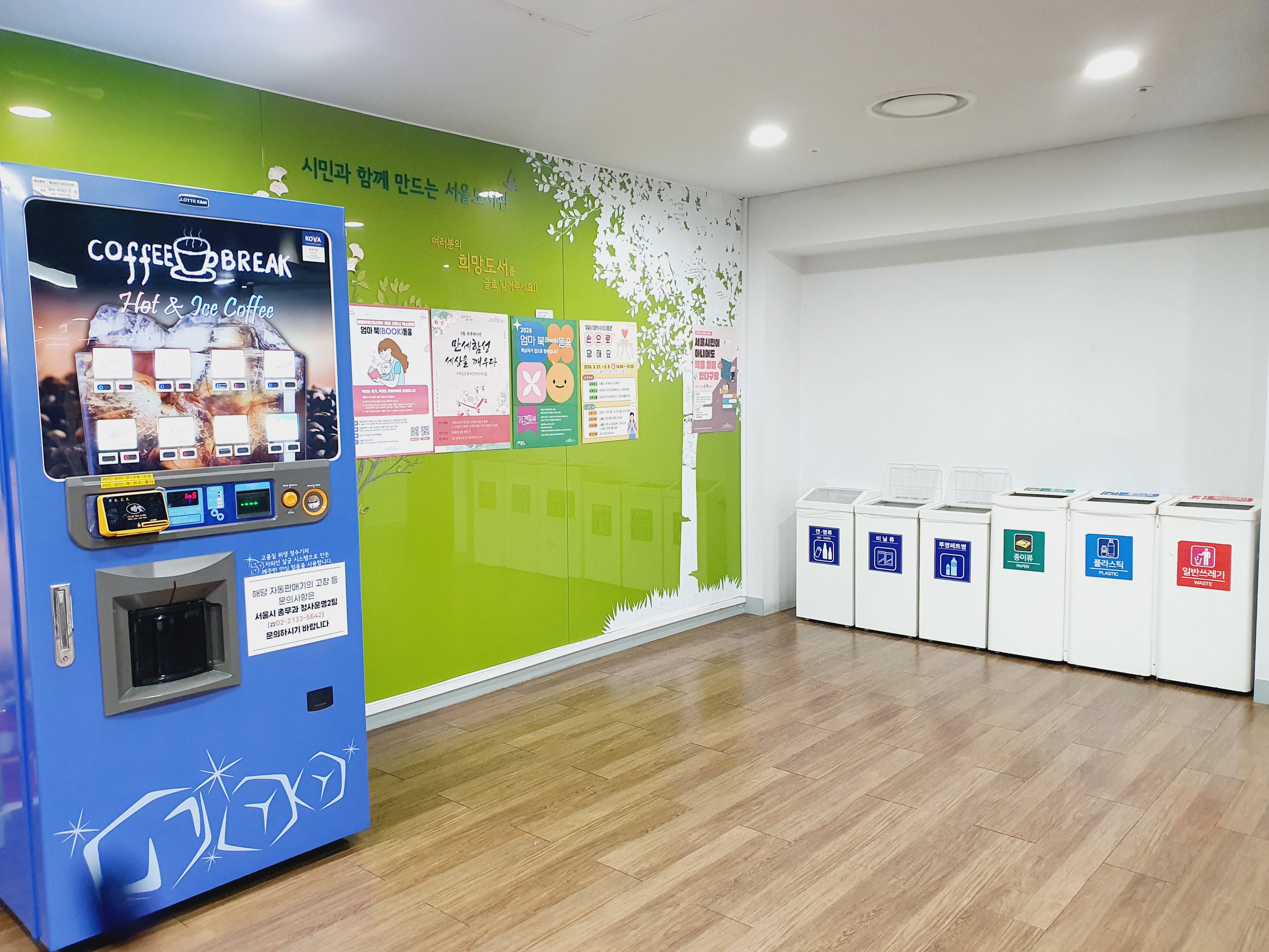 서울도서관안에는 자판기와 분리 쓰레기통도 있어요.
