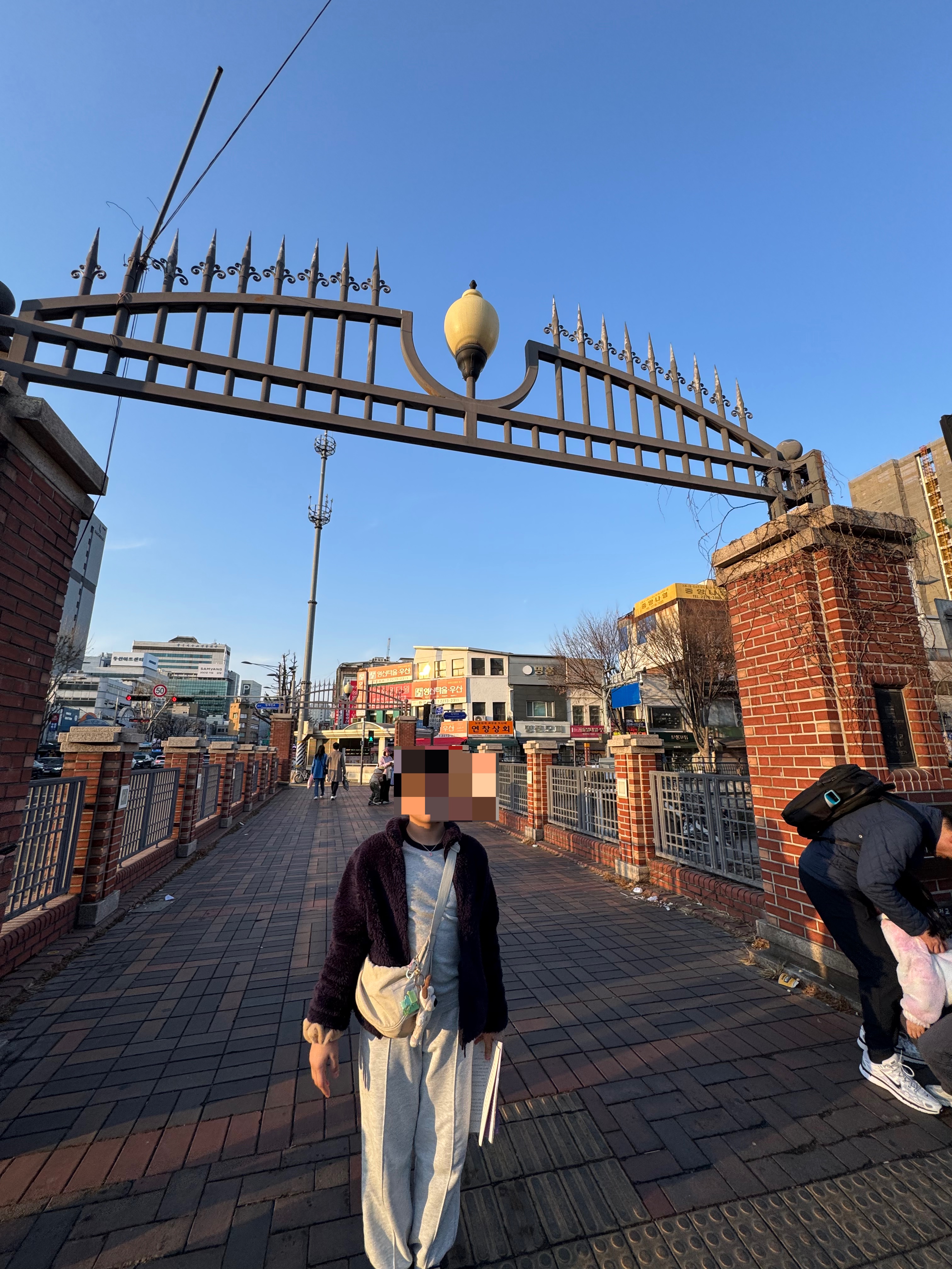 ↑광장시장 옆을 흐르는 청계천의 마전교에 서 있는 소은 리포터, 마전교 바로 옆이 광장시장이에요.