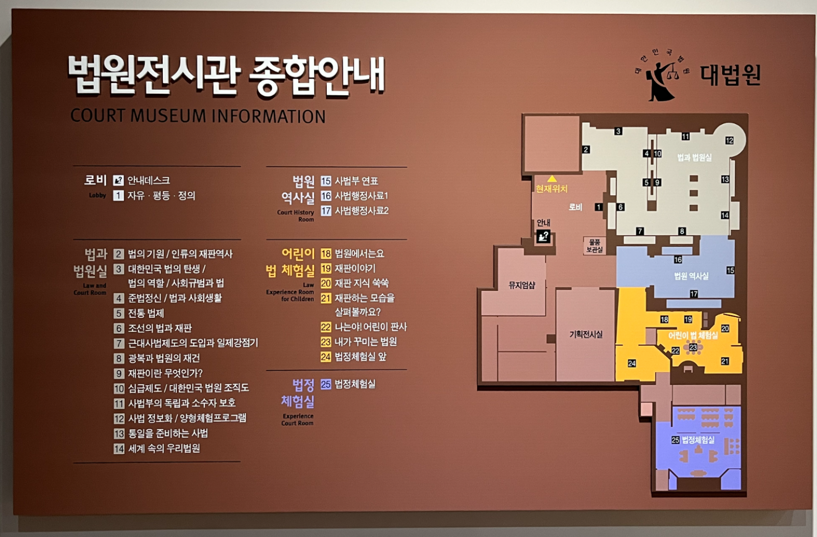법원전시관은 법과 사법제도 그리고 법원에 대해 보다 쉽고 즐겁게 이해할 수 있도록 마련된 공간이라고 해요. 사법부의 역사와 역할을 살펴볼 수 있는 전시와 다양한 대상별 교육프로그램을 운영하고 있다고 해요.