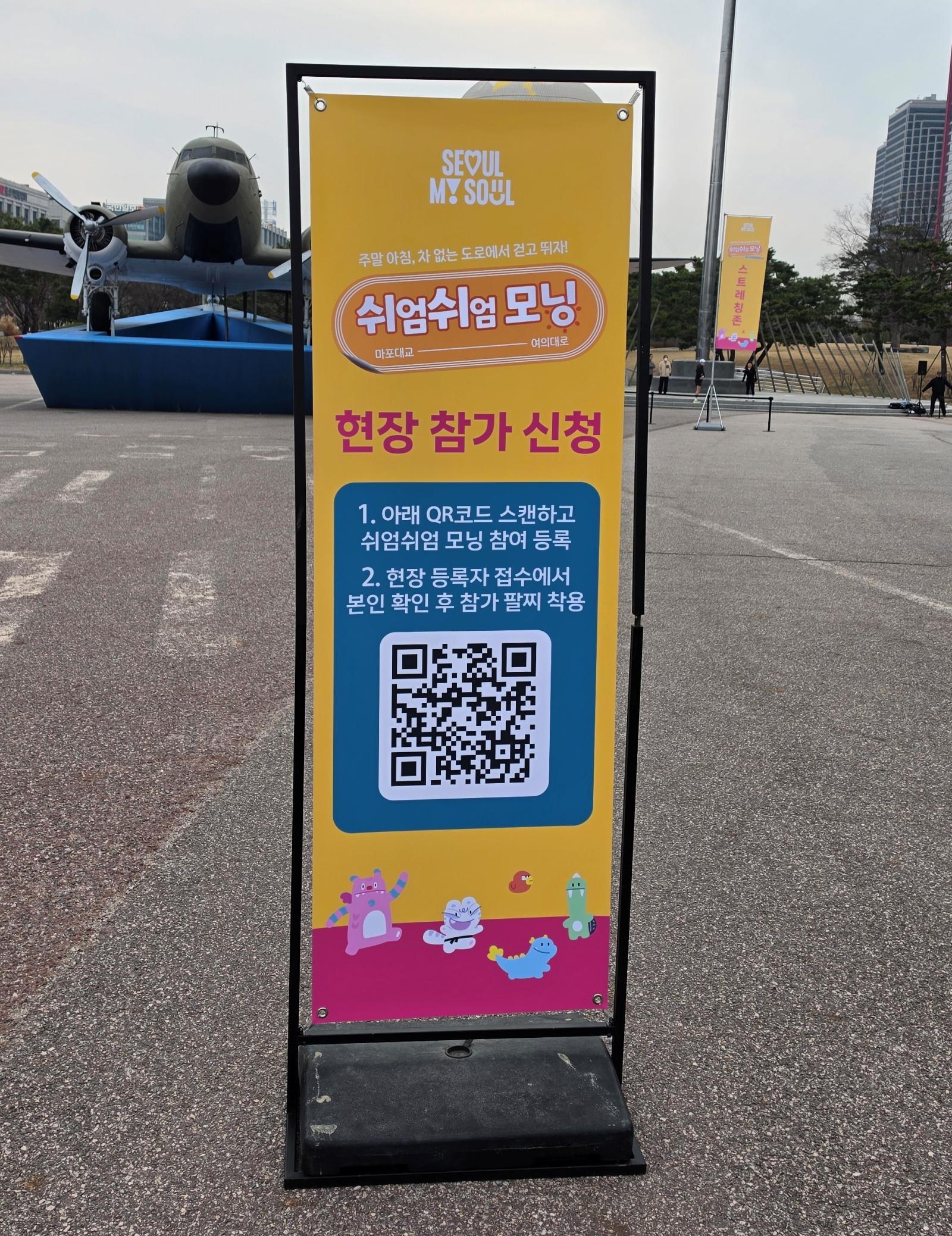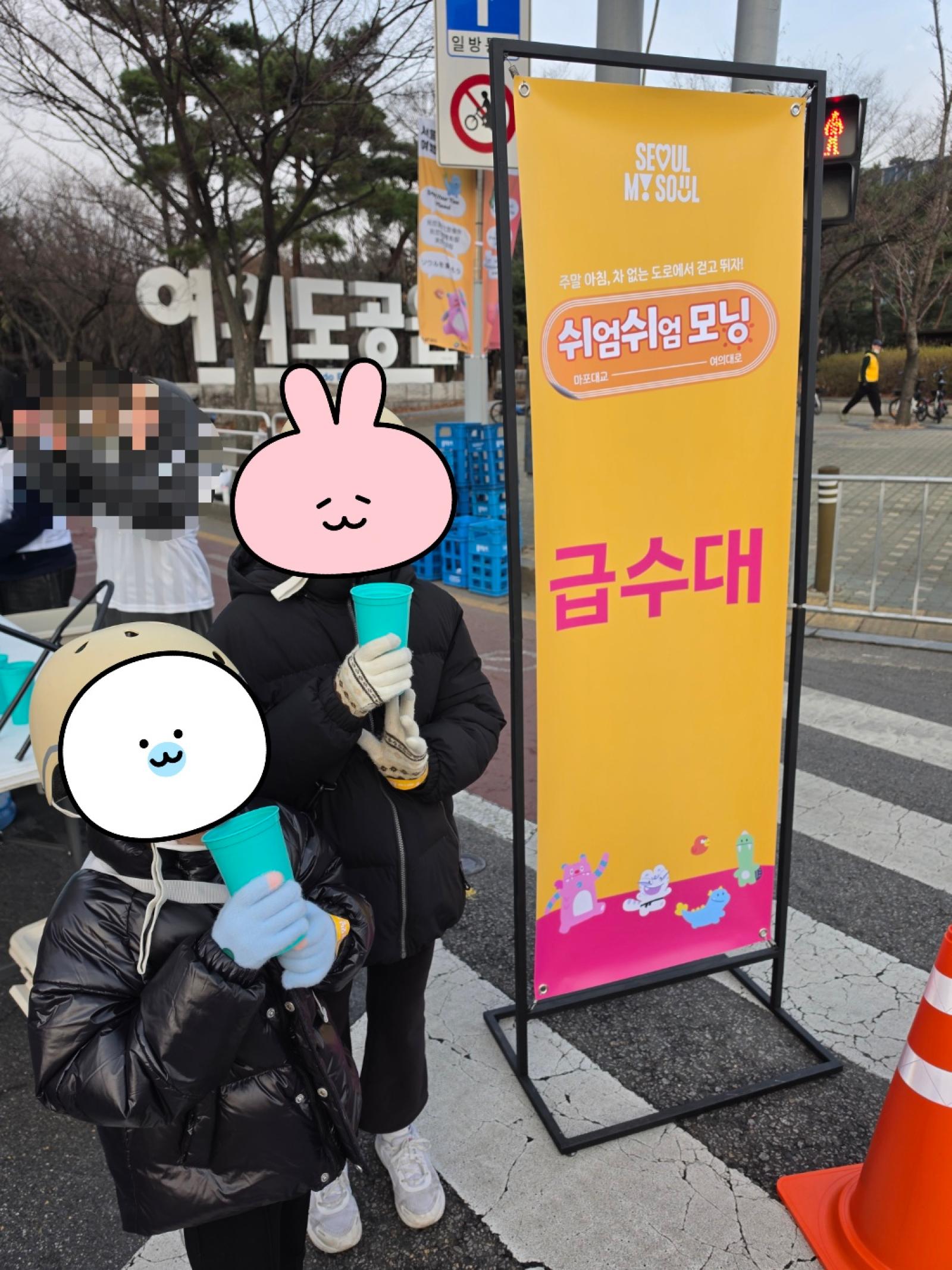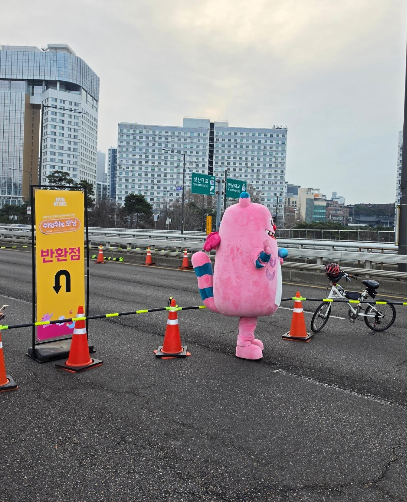 '쉬엄쉬엄 모닝'은 평소 자동차로 붐비는 여의대로와 마포대교 구간을 오직 사람들에게만 활짝 열어주는 특별한 행사입니다. 이른 아침인데도 불구하고, 편안하게 걷는 분들, 힘차게 뛰는 분들, 그리고 귀여운 반려견과 함께 산책 나온 분들까지 정말 많은 시민들로 가득해서 깜짝 놀랐습니다.