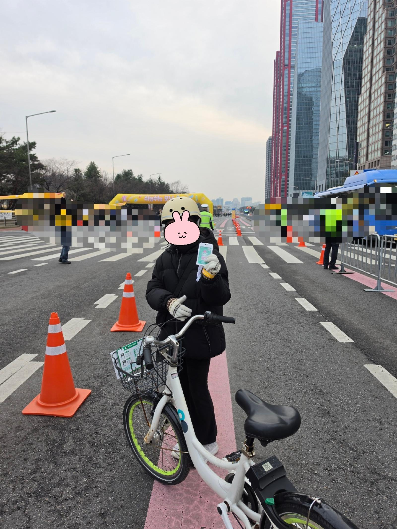 저희 가족은 이번 행사를 더욱 특별하게 즐기기 위해, 네 식구 모두 '따릉이' 자전거를 빌려서 행사 장소까지 이동했습니다. 현장에 도착해서 QR코드로 간편하게 참가 신청을 하고, 손목띠를 차니 드디어 행사에 참여한다는 것이 실감 났습니다.