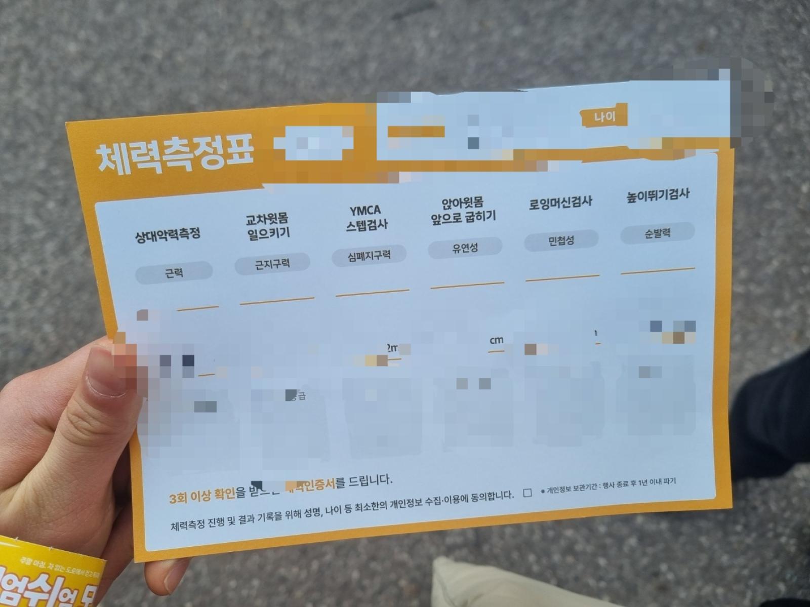 열심히 참여하고 ‘체력측정표’에 확인 도장을 받아 멋진 '체력인증서'를 받을 수 있었습니다! 정말 뿌듯했어요.