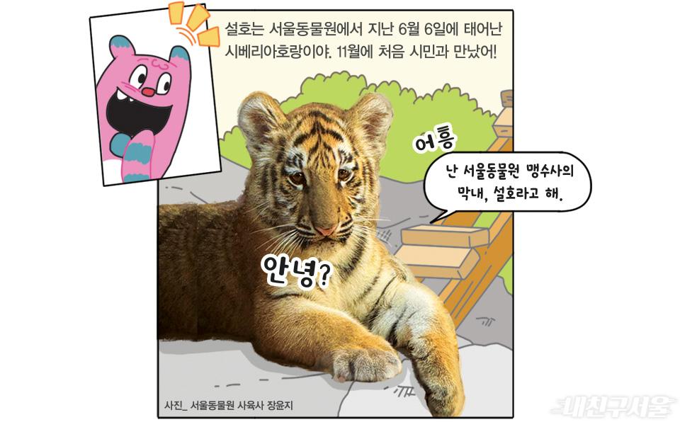 - 설호는 서울동물원에서 지난 6월 6일에 태어난 시베리아호랑이야. 11월에 처음 시민과 만났어!